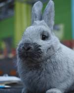 „Das reiche Kaninchen. Von den sogenannten reichen Kaninchen *) sagt Hr. Daubenton, es habe zum Theil weißes, zum Theil mehr oder weniger dunkles, schieferfarbiges oder braunes und schwärzliches Haar. Die kurzen und sanften spielten ins Mäusegrau, oder ins Schieferartige, das ist, ins Blaulichte. An den langen und dichten Haaren bemerkt man zweierlei Farbe. Einige sind schwärzlich, oder von sehr dunkler Schieferfarbe, andere so weiß, daß die Mischung des Weißen, Blauen oder Schwarzen, auf unterschiedenen Theilen, sehr verschieden ausfällt. Kopf und Ohren sind fast ganz schwärzlich, man erblickt nur einige weiße Haare daran. Viel häufiger finden sie sich am Hals, auf den Schultern, auf dem Rücken u. s. w. Auf dem ganzen Hintertheil des Leibes aber, auf der Brust und am Bauche siehet man vielmehr weiße, als blaue Haare. …“;