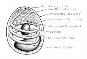 Abb. 2: Struktur der Mikrosporidien-Sporen; verändert nach Keeling & Fast, 2002