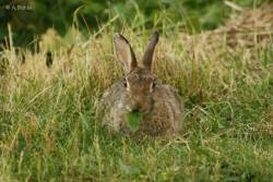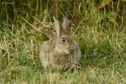 Abb. 3: Wildkaninchen frisst Weidelgrasblätter und -samen (Lolium perenne)Das Wildkaninchen ist ursprünglich aus Asien nach Europa eingewandert, wurde während der Eiszeiten bis nach Spanien und Portugal zurückgedrängt und ernährte sich immer vorwiegend von Gräsern und Kräutern. Heutige Berichte von Wildkaninchen auf entfernten Kontinenten oder Inseln gehen immer auf deren Ansiedelung durch den Menschen dort zurück. Dadurch war es gezwungen, sich an dortige Gegebenheiten anzupassen.