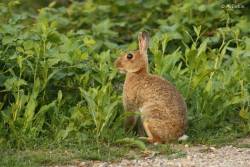 Abb. 2: Wildkaninchen frisst Acker-Schöterich-Blätter (Erysimum cheiranthoides)Das Kaninchen zählt unter den Herbivoren zu den Folivoren. Das heißt, es ernährt sich bevorzugt von Pflanzen und von diesen wiederum von den Blättern. „Bevorzugt“ bedeutet, dass es blättrige Bestandteile von grünen Pflanzen anderer Nahrung vorzieht, solange diese die Nährstoffe enthält, die es zum Aufbau und Erhalt seines Körpers und zur Fortpflanzung benötigt.