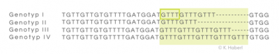 Abb. 1: ITS-Sequenzen der 4 bekannten EC-Genotypen; nach Talabani et al., 2010